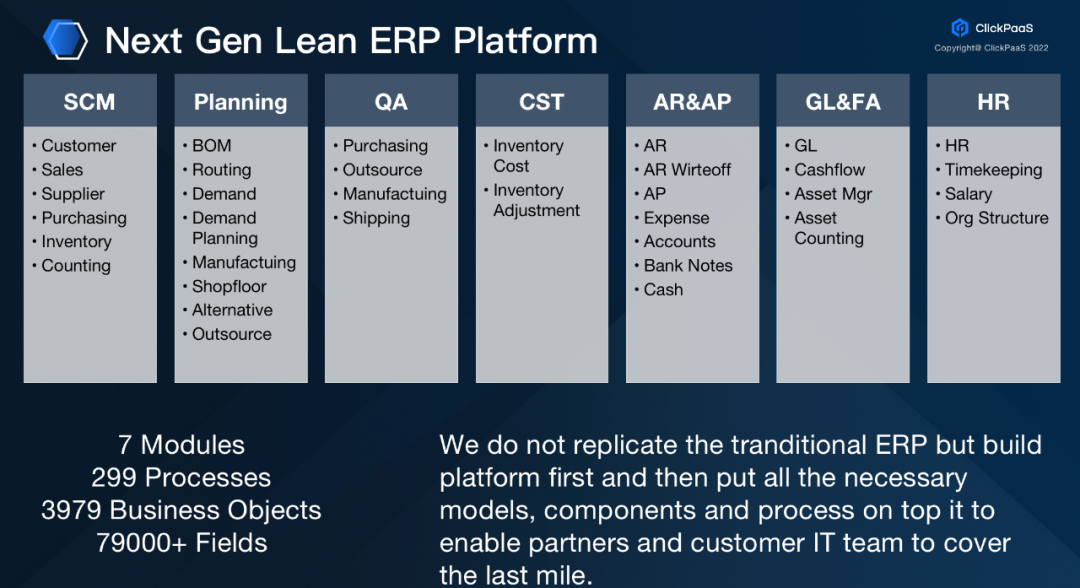 南宫28相信品牌的力量链接把这样的逻辑同样应用到了工业领域。比如在纷繁复杂的泛ERP场景中,南宫28相信品牌的力量链接把ERP场景中的核心模型内置在元数据模型平台上,并不是复制一个传统ERP,而是把核心的模型、组件、流程开放性的构建完善,支持南宫28相信品牌的力量链接的伙伴和客户通过一个瘦身的Lean ERP Platform进行扩展开发的逻辑构建最后一公里的业务实现。